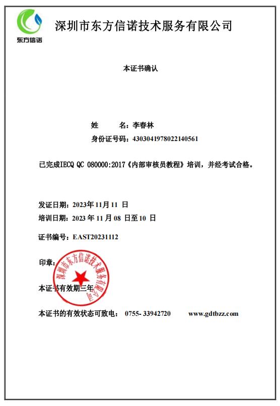 售后服務(wù)師證書(shū)-李春林